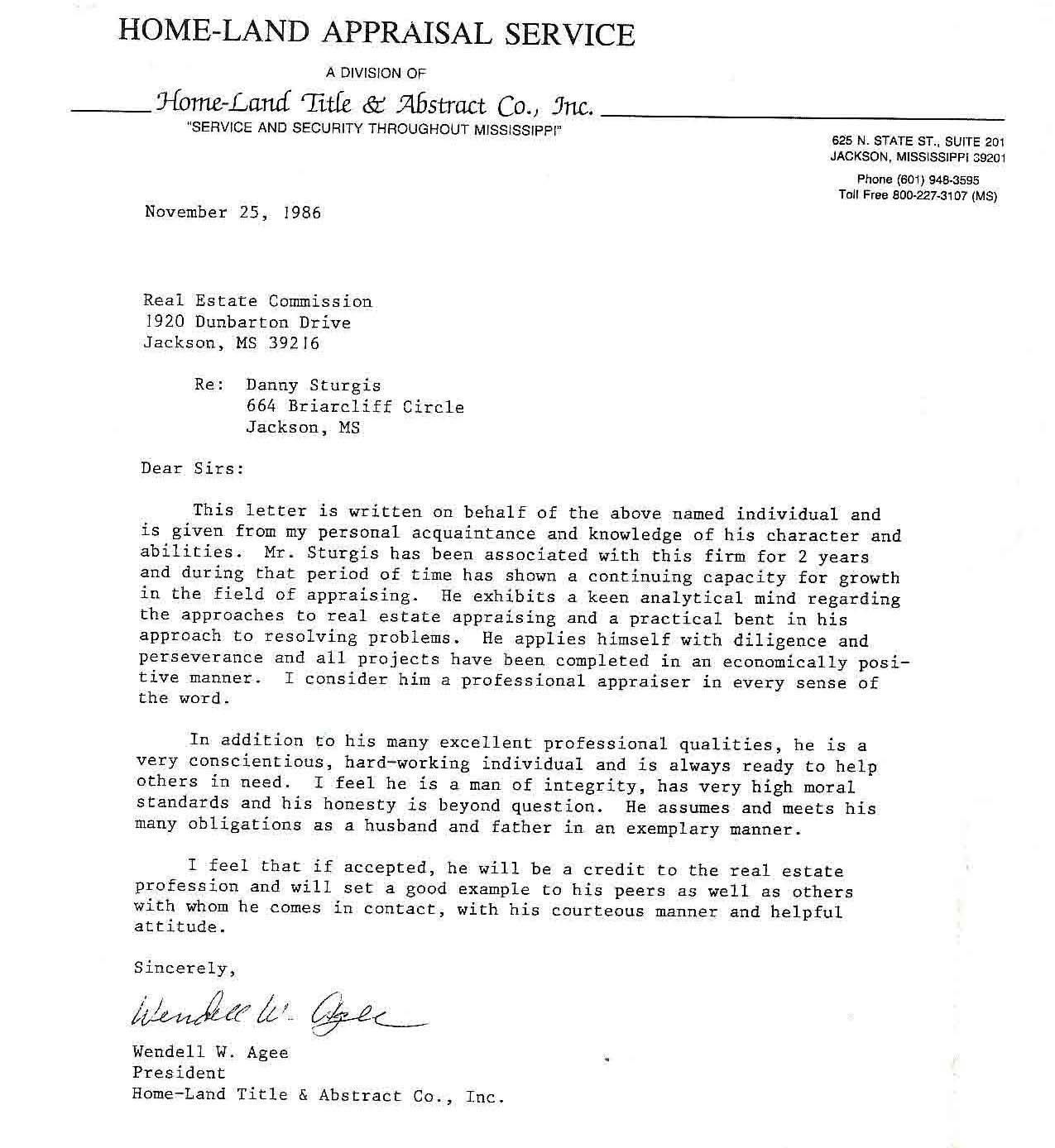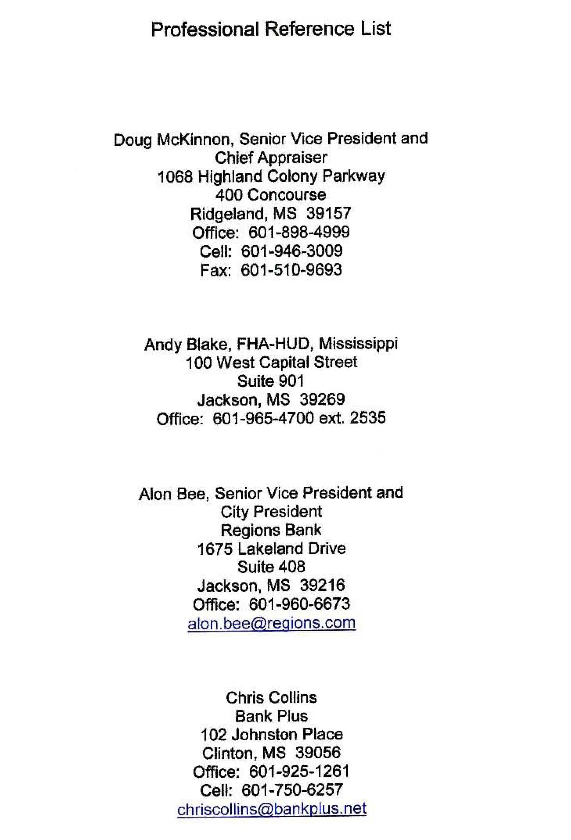 I have been doing real estate business for the past 18 years in Jackson, Clinton, Madison, and Brandon MS. Appraisal Analyst has done many of my appraisals over this time period. They have always proved to me to do very professional, accurate, and reliable work. I've been very pleased with the service. I have not had one problem on my appraisals by using Appraisal Analyst. I highly recommend them to your organization. Should you need further information please call me at (601) 502-2266.