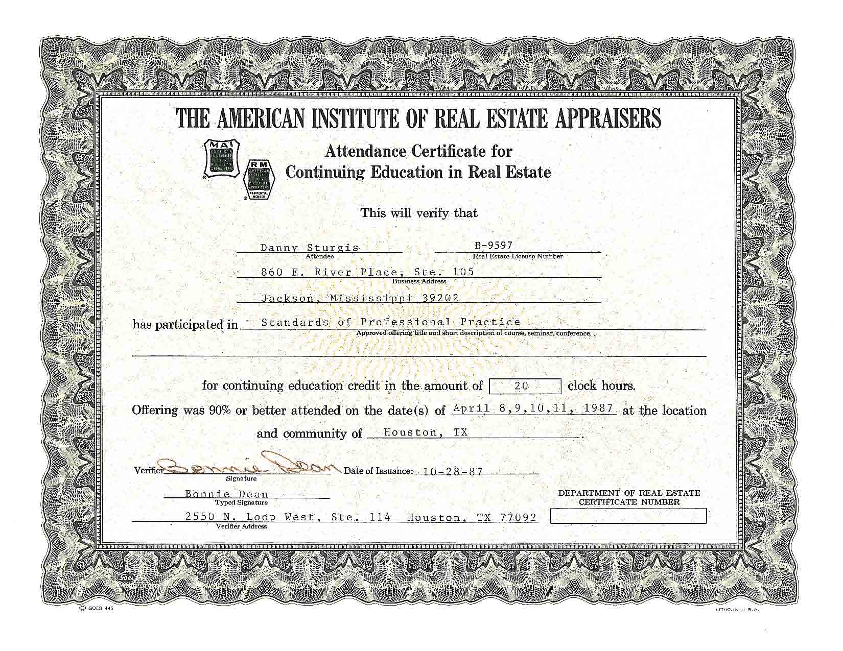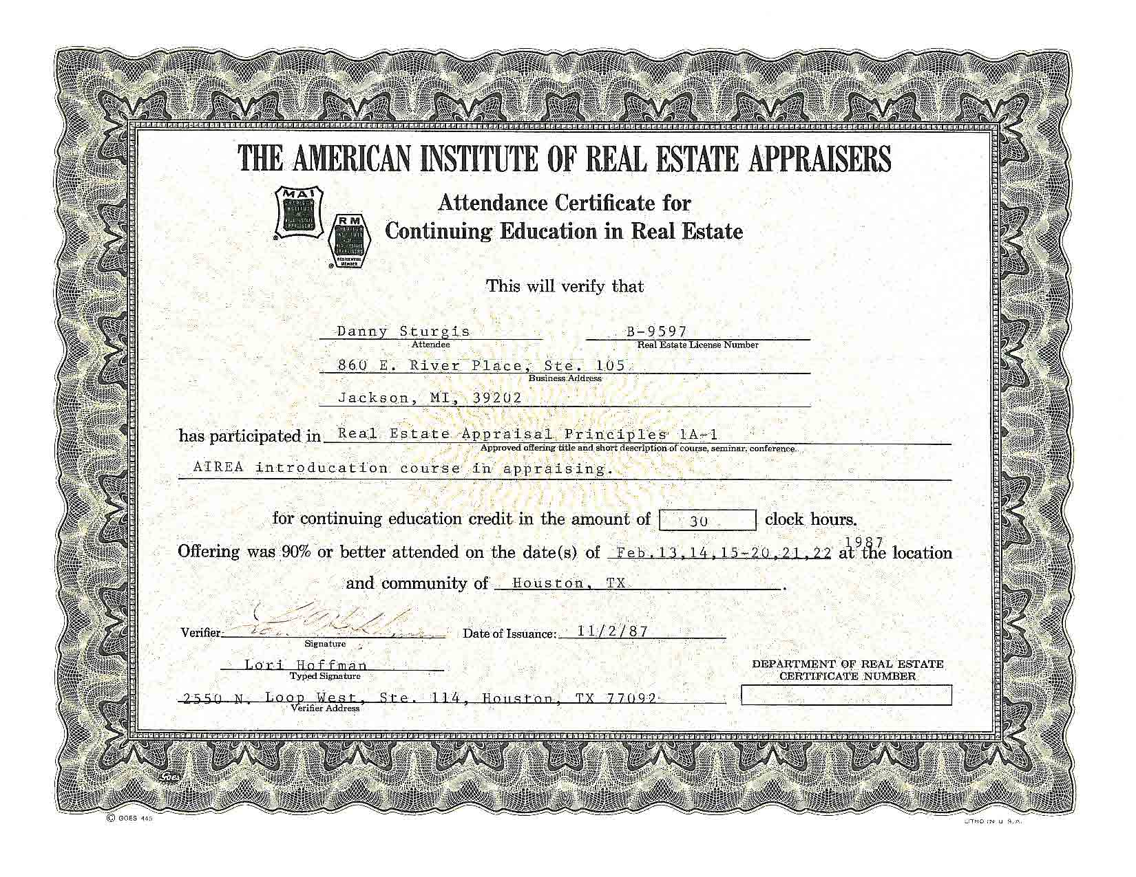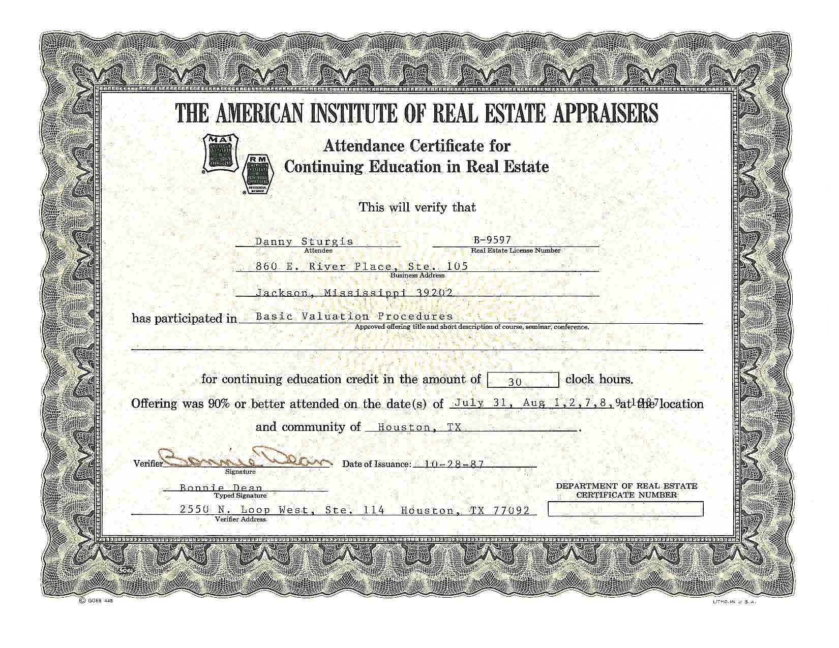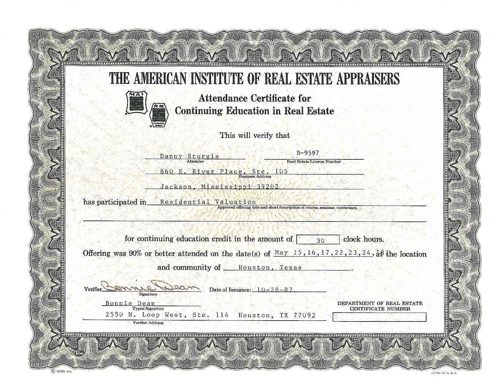 Real Estate Appraisal Course, 1985